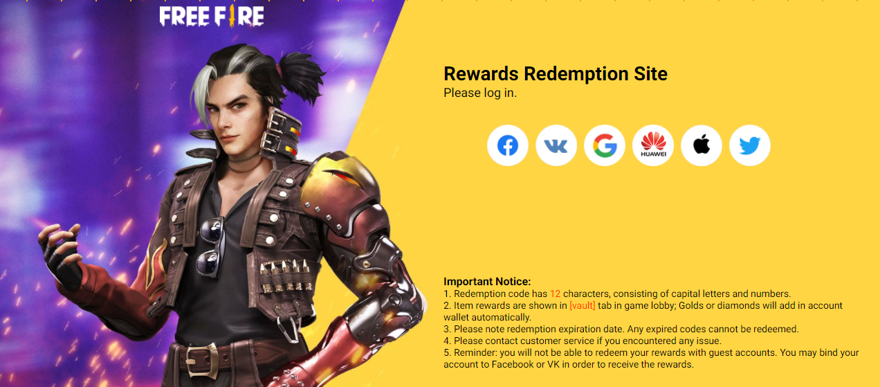 A user can copy, and paste any Free Fire redeem code on the official Free Fire redeem code redemption website. A player shall be signed in through the account which had been used while signing up for Free Fire.